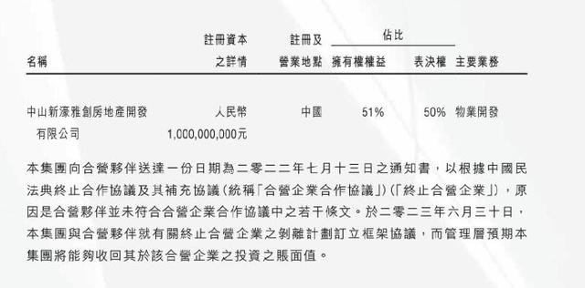 据悉,双方已于2023年6月就合作终止订立剥离框架协议,因雅居乐未履行付款义务,新濠已向中国国际经济贸易仲裁委员会提起仲裁追讨,且已对相关投资计提1.04亿港元减值。